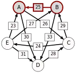 p[A,B], a força do trajeto mais forte do candidato A ao candidato B, é o valor máximo tal que não há nenhum trajeto do candidato A para o candidato B dessa força. Se não há absolutamente nenhum trajeto do candidato A ao candidato B, então p[A,B] = 0.
