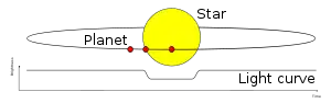 Enquanto o método da velocidade radial fornece informações sobre a massa de um planeta, o método fotométrico pode determinar o raio do planeta. Se um planeta cruza (trânsito) na frente do disco de sua estrela hospedeira, o brilho visual observado da estrela diminui um pouco, dependendo dos tamanhos relativos da estrela e do planeta.[8] Por exemplo, no caso de HD 209458, a estrela escurece em 1.7%. No entanto, a maioria dos sinais de trânsito são consideravelmente menores; por exemplo, um planeta do tamanho da Terra transitando por uma estrela parecida com o Sol produz um escurecimento de apenas 80 partes por milhão (0.008%).