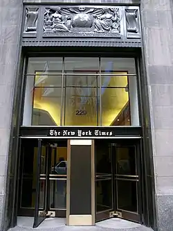 Embora público primário do ' sempre foi o povo de Nova York, o New York Times tornou-se progressivamente o 'jornal da record' nacional dominante. Além de sua distribuição nacional diária, o termo significa que edições anteriores são arquivadas em microfilmes por todas as bibliotecas públicas de tamanho decente do país, e os artigos do Times são frequentemente citados por historiadores e juízes como evidência de que um grande evento histórico ocorreu em uma certa data. O Los Angeles Times e o Wall Street Journal também são jornais de registro em menor grau. Embora o USA Today tenha tentado se estabelecer como um jornal nacional, foi amplamente ridicularizado pelo mundo acadêmico como o "McPaper" e não é assinado (muito menos arquivado) pela maioria das bibliotecas.[5]
