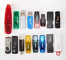Alguns tipos de mídias removíves: o CD-R (do inglês Compact Disc - Recordable), o disquete, significando disco flexível; o DVD significa Digital Versatile Disc (antes denominado Digital Video Disc); a Memória USB Flash Drive, também designado como Pen Drive, entre outros.