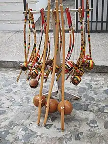 - Berimbau - O berimbau é um instrumento de uma corda só que está ligado à forma de arte marcial afro-brasileira da capoeira e também pode ser ouvido no jazz e na música folclórica tradicional. Ele produz um som ressonante único.[7]