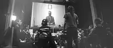 Quando a música é composta e orquestrada, a orquestra ou o grupo a executa, geralmente com o compositor. Os músicos desses conjuntos geralmente não são creditados no filme ou no álbum e são contratados individualmente (e, nesse caso, o contratante da orquestra é creditado no filme ou no álbum da trilha sonora ). No entanto, alguns filmes começaram recentemente a creditar os músicos contratados nos álbuns com o nome Hollywood Studio Symphony, após um acordo com a Federação Americana de Músicos . Outros conjuntos de performances que são frequentemente empregados incluem a London Symphony Orchestra (tocando música desde 1935) [11] a City of Prague Philharmonic Orchestra (uma orquestra dedicada principalmente à gravação), a BBC Philharmonic e a Northwest Sinfonia.