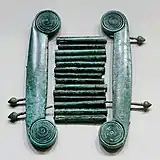 - A lira, um instrumento de cordas tangidas afinadas segundo as notas de um dos modos, e fixadas em um arcabouço formado com o casco de tartaruga. Era usada como acompanhamento para recitativos e canções.