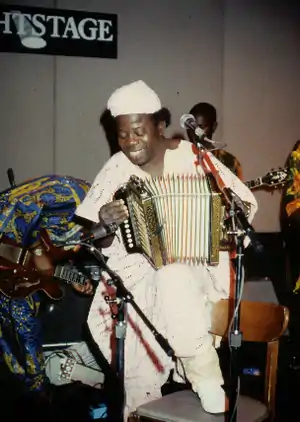 - Afropop: Fuji Alhaji Sikiru Ayinde Barrister, que permanece na vanguarda, começou a cantar em 1965 were music usada para incentivar muçulmanos de manhã cedo durante a época dos santos Ramadan. Ele passou a misturar com "aspectos de percussão apalá e canções vocais e meditativas, filosófica música sacara e surgiu com um novo estilo de música que eles apelidaram de fuji.
