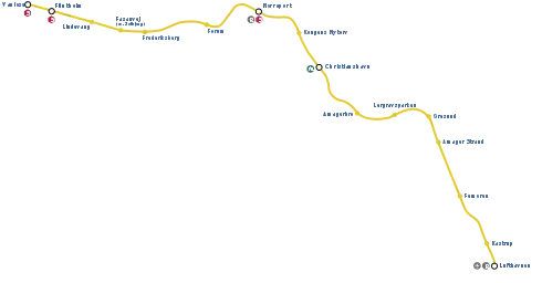 A linha foi inaugurada a 19 de Outubro de 2002 com o troço Nørreport - Lergravsparken. A 29 de Maio de 2003 foi alongada até Frederiksberg, e a 12 de Outubro do mesmo ano chegou até Vanløse, constituindo desta forma o traçado actual.