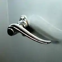 Maçaneta que precisa ser forçada para baixo para abrir.