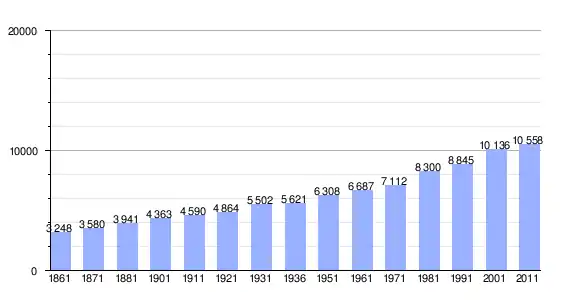 | Variação demográfica do município entre 1861 e 2011[3] |