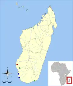 Atualmente, é encontrado apenas na floresta Mikea, no sudoeste do país, mas registros subfósseis indicam que era amplamente distribuído no sul de Madagascar. Alterações climáticas e competição com espécies introduzidas podem ter levado à mudança na sua distribuição, e floresta Mikea, o único lugar onde ainda se sabe que pode ser encontrado, está ameaçada pelo desenvolvimento humano