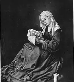 - Maria Madalena a Ler de Ambrosius Benson, c. 1525. Este trabalho partilha do ênfase dado por van der Weyden no volume do seu livro, e, de forma semelhante, concentra-se nos seu delicados dedos.[55]