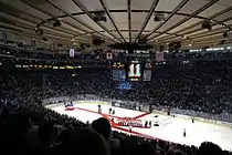 Interior do MSG na configuração para hóquei no gelo