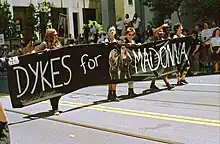 No livro Madonna: Like an Icon , é explicada a importância da cantora no mundo do lesbianismo. A escritora Lousie Carolin disse que Madonna tornou essa subcultura visível. Para entender, ele explicou que os anos 80 haviam sido uma era política e anti-comercial veemente. Enquanto garotos gays estavam se divertindo, as lésbicas começaram a ser vistas como glamourosas e divertidas na década seguinte, e a artista pegou essa onda com eficiência. Quando a cantora conversou com The Advocate com Torie Osborn, a jornalista a considerou "a primeira grande estrela pop a se orgulhar", enquanto mencionava uma nova era de possibilidades para outras celebridades.[16] Embora ao criticar a artista por seu uso da iconografia nas subculturas da comunidade, Michael Musto disse que ela é a única pessoa (artista) capaz de admitir aberta e publicamente a visitar bares de lésbicas e também defender a causa LGTB sem nehum medo.[117]
