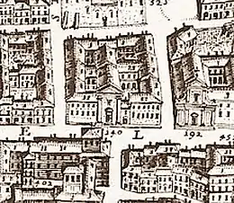 Esta igreja foi construída entre 1593 e 1600 e foi entregue ao Collegio del Litterato em 1601, uma organização que abrigava romanos órfãos no edifício vizinho e que havia sido fundada em 1582 por Leonardo Ceruso (1551-1595), conhecido como Il Letterato"[2][3], citado pelo papa Gregório XIII (r. 1572-1585). A igreja tinha uma fachada simples com duas pilastras sustentando um frontão triangular[1]. A igreja foi demolida em 1694 e no local foi construído o Palazzo Raggi, construído entre 1730 e 1740.