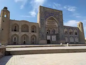 | A Madraça de Abdulazize Cã está incluída no sítio "Centro histórico de Bucara", Património Mundial da UNESCO. |