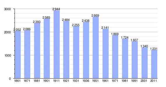| Variação demográfica do município entre 1861 e 2011[3] |
