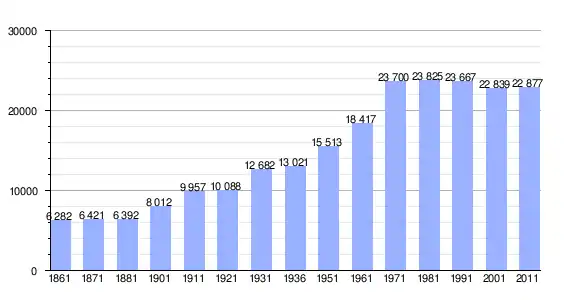 | Variação demográfica do município entre 1861 e 2011[3] |