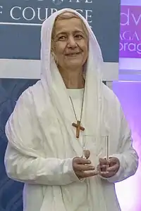 - «بالصور.. ماجي الأم تريزا المصرية لـ بوابة الأهرام : ضحكة طفل عندى أهم.. لا يشغلني الفوز بنوبل» [In pictures.. Maggie Mother Teresa of Egypt to Al-Ahram Gate: A child's laugh is more important to me.. I don't care about winning a Nobel Prize]. بوابة الأهرام (em árabe). Consultado em 4 de julho de 2019