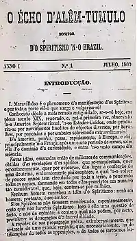 A partir de 8 de março de 1869 a revista O Écho d'Alêm-Tumulo traduz trechos de Allan Kardec que falam sobre o mesmerismo[15].