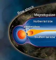 - Russell, C.T. (2001). «The dynamics of planetary magnetospheres». Planetary and Space Science. 49: 1005–1030. doi:10.1016/S0032-0633(01)00017-4