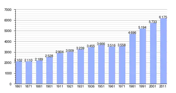 | Variação demográfica do município entre 1861 e 2011[3] |