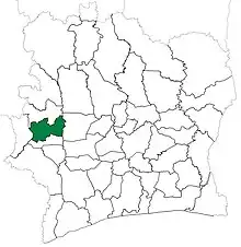 ![]() Localização na Costa do Marfim. Man (departamento) tem esses limites desde 2005. | ||