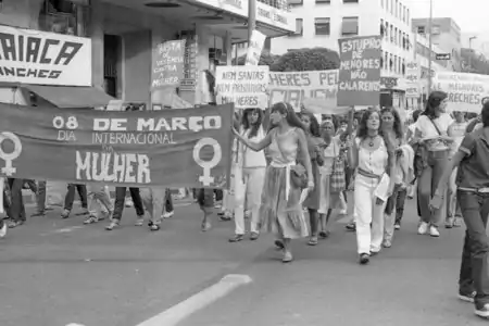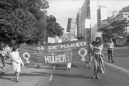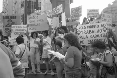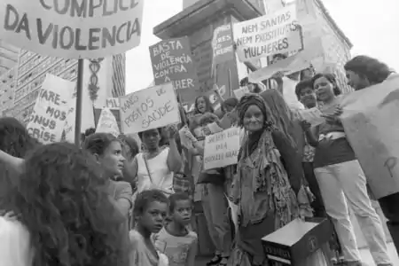 Uma outra característica do acervo Mana Coelho são as manifestações que a fotografa esteve presente e retratou. O profissional que manipula a câmera tem o poder de transformar uma ação vista como passageira e corriqueira em imagens marcantes para a nação.[7] Desse modo, a seguinte manifestação que a jornalista participou registra e materializa um momento de grande resistência e luta de um determinado público, o imortalizando.[9]