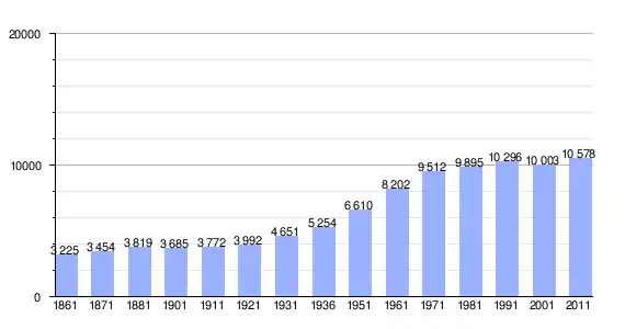 | Variação demográfica do município entre 1861 e 2011[3] |