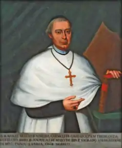 Foi apresentado para bispo da Diocese de Angra a 3 de maio de 1819, tendo obtido confirmação papal a 29 de Maio do ano seguinte. A 3 de Agosto daquele mesmo ano de 1820 foi sagrado bispo, mandando de imediato tomar posse da sua diocese por procuração feita ao arcediago Félix José Ferreira.