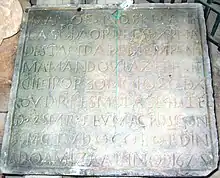 MANUEL NOBRE CANELAS CAVALEIRO DA ORDEM DE CRISTO NATURAL DESTA CIDADE E MORADOR EM PANAMÁ MANDOU FAZER ESTE CELEIRO PARA 30 MOIOS QUE DEIXOU DE RENDA PARA ESMOLAS E 4 DOTES DE 25 MIL REIS E UMA CAPELA DO SANTÍSSIMO SACRAMENTO COM 66 MISSAS CANTADAS TUDO ÇOBORDINADO A MISERICÓRDIA ANO DE 1675.