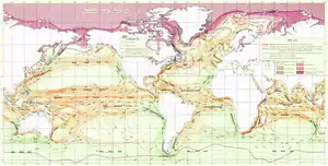 Nem todo fluxo ocorre ao longo de redes lineares; massas bidimensionais e tridimensionais também podem fluir, especialmente água (por exemplo, corrente oceânica) e ar (vento). Seu movimento pode ser modelado como um campo vetorial, no qual a magnitude e a direção do movimento podem ser medidas em qualquer ponto do espaço.[9] :149Na lista de Imhof acima, um mapa que visualiza isso, muitas vezes chamado de mapa de fluxo de massa ou mapa de fluxo contínuo,[13] foca na direção e velocidade do fluxo, enquanto outros aspectos como origem/destino e rota de viagem são sem sentido.
