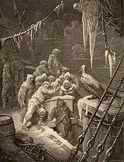 Uma grande ave marinha, o albatroz, desempenha um papel central no poema de Samuel Taylor Coleridge The Rime of the Ancient Mariner, de 1798, que por sua vez deu origem, na anglofonia, ao uso da ave como metáfora para um fardo psicológico semelhante a uma maldição.[43] Em seu poema The Sea and the Hills, de 1902, Rudyard Kipling expressa um sentimento de desejo por viver o mar e usa aliteração[44] para sugerir sons e ritmos marítimos:[45] "Who hath desired the Sea? — the sight of salt water unbounded — The heave and the halt and the hurl and the crash of the comber wind-hounded?"[46] John Masefield também sentia e demostra uma atração pelo mar em seu Sea Fever, escrevendo "I must go down to the seas again, to the lonely sea and the sky".[47] Já o escritor Jorge Luis Borges compôs o poema El Mar, de 1964, louvando-o como algo que constantemente "regenera" o mundo e as pessoas que o contemplam, além de estar próximo da essência do ser humano.[48]