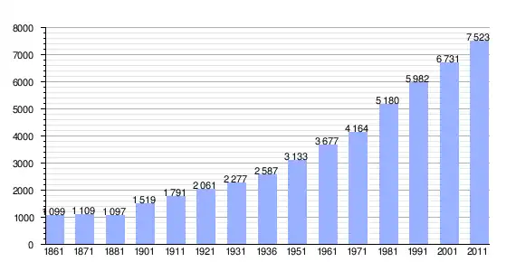 | Variação demográfica do município entre 1861 e 2011[3] |