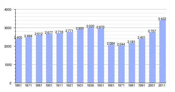 | Variação demográfica do município entre 1861 e 2011[3] |