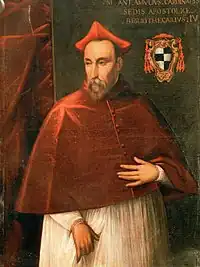 Criado cardeal diácono no consistório de 26 de fevereiro de 1561 (1) ; recebeu o chapéu vermelho e o título de S. Marcello, em 10 de março de 1561.[1]