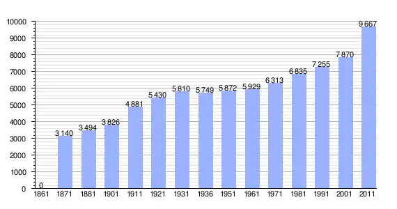 | Variação demográfica do município entre 1861 e 2011[3] |