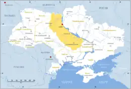 As principais cidades da região incluem Cherkasy, Kropyvnytskyi, Bila Tserkva, Zhytomyr e Oleksandriia.