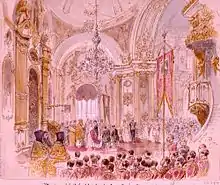 A grã-duquesa com o tradicional traje da corte imperial russa
