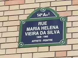 Em 2019, o nome da pintora foi atribuído a uma rua de Paris, situada no 14.º bairro, bairro esse onde habitou e trabalhou durante vários anos.[21] Por essa ocasião, foram colocados no vestíbulo de honra onde o Presidente francês acolhe todos os chefes de Estado que o visitam, situado na entrada do Palácio do Eliseu, as pinturas “Jardins suspendus” (1955) e “Stèle” (1964), pertencentes ao espólio artístico e cultural do Governo Francês.[22]