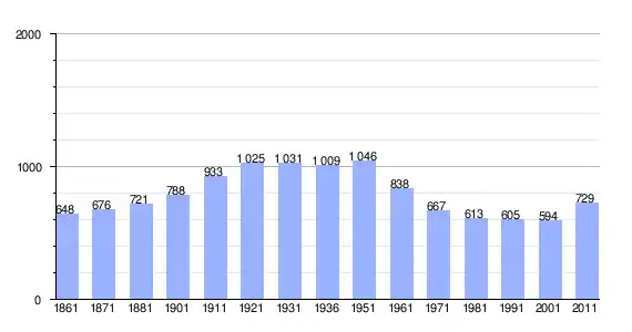 | Variação demográfica do município entre 1861 e 2011[3] |
