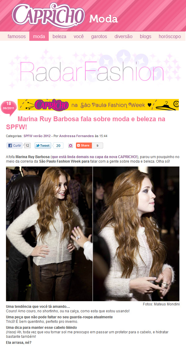 - «Emocionada, Marina Ruy Barbosa esquece polêmicas e agradece carinho do público». Consultado em 18 de outubro de 2013