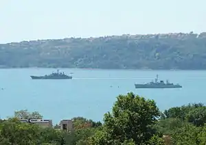 Dois navios de guerra da marinha de guerra da Bulgária.