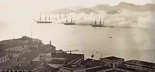 Durante a década de 1870, o império brasileiro teve por objetivo fortalecer ainda mais a sua Armada frente a uma possibilidade de um conflito armado com a Argentina. Assim, adquiriu uma canhoneira e uma corveta em 1873, um encouraçado e um monitor em 1874 e logo em seguida dois cruzadores e mais um monitor.[43][56] O início da década de 1880 revelou que o crescimento da Armada continuaria, pois os Arsenais da Marinha do Rio de Janeiro, Bahia, Pernambuco, Pará e Mato Grosso continuaram a construir dezenas de navios de guerra.[57] Quatro barcos torpedeiros foram comprados, foi criada a Escola Prática de Torpedos para praças e instalou-se uma oficina de fabricação e reparo de torpedos e aparelhos elétricos no Arsenal de Marinha do Rio de Janeiro, em 30 de novembro de 1883.[58] Este mesmo Arsenal construiu as canhoneiras a vapor: Iniciadora, Carioca, Camocim, Cabedelo e Marajó, além do patacho Aprendiz, todos com cascos de ferro e aço, e não mais de madeira (os primeiros do tipo construídos no país).[57] Contudo, o ápice da Armada Imperial ocorreu com a incorporação dos encouraçados de alto mar Riachuelo[59] e Aquidabã[60] (ambos dotados de tubos lança-torpedos) em 1884 e 1885, respectivamente. A obtenção destes navios possibilitou o Brasil permanecer "entre as potências navais do universo".[61] Estes dois navios marcaram a época, pois: