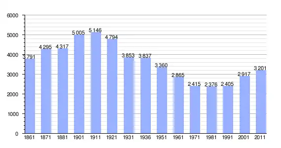 | Variação demográfica do município entre 1861 e 2011[3] |