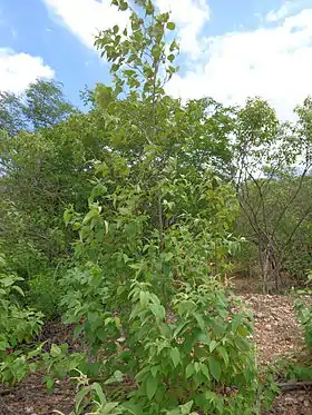É uma espécie típica das terras mais planas da Caatinga, sendo encontrada principalmente no interior dos estados do Nordeste. A forma de reprodução dá-se-lhe além das sementes também através de raízes, vê-se comumente novas plantas originar-se através de brotos vindos de suas raízes.