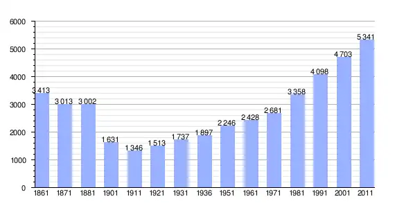 | Variação demográfica do município entre 1861 e 2011[3] |