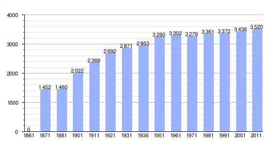 | Variação demográfica do município entre 1861 e 2011[3] |
