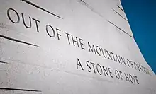 O elemento central do Memorial é baseado em um verso do discurso de King: "Out of a mountain of despair, a stone of hope" ("De uma montanha de desespero, uma pedra de esperança" - em tradução livre). Uma escultura de 9 metros de altura de Martin Luther King representando a "Pedra de Esperança" foi colocada num espaço posterior à duas paredes de granito que simbolizam a "Montanha de Desespero".