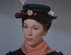 - Julie Andrews - Mary Poppins - babá com poderes mágicos, que vai trabalhar na casa do Sr. Banks para cuidar de seus filhos; ela chega na casa do patrão voando e usando um guarda-chuva como paraquedas e traz consigo diversas brincadeiras que mudam a vida daquela família.[10]