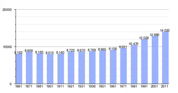 | Variação demográfica do município entre 1861 e 2011[3] |