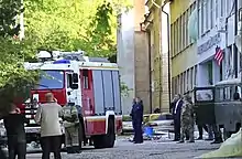 O website da cidade alegou que a explosão ocorreu no primeiro andar, embora o tiroteio tenha ocorrido no segundo.[15] A CNN informou que o canal de televisão estatal Rossiya 24 disse que 200 militares foram enviados para o local.[16] Relatos de testemunhas oculares diferem entre 10 e 15 minutos sobre o tempo que levou para a polícia responder,[13] embora a delegacia estivesse do outro lado da rua, a 300 metros (984 pés) do instituto.[6] O massacre terminou quando o atirador cometeu suicídio na biblioteca do politécnico.[17][18][19]