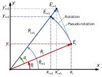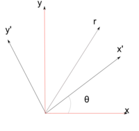 Em duas dimensões, a rotação pode ser definida por um único ângulo, . Por convenção, ângulos positivos representam rotação dos vetores no sentido horário, ou dos eixos coordenados no sentido anti-horário [Ref. 2][Ref. 1] [Nota 1]. O eixo de rotação nesse caso (o eixo Z) reside fora do espaço em consideração.